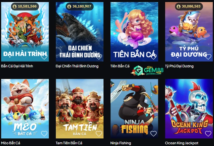 Bắn cá Gem88 là một trong những trò chơi giải trí đổi thưởng được yêu thích nhất hiện nay. Không chỉ sở hữu giao diện đồ họa sắc nét, hiệu ứng sống động, hệ thống bắn cá tại Gem88 còn tích hợp nhiều tính năng đặc biệt giúp người chơi tối ưu lợi nhuận nếu biết áp dụng chiến thuật hợp lý.